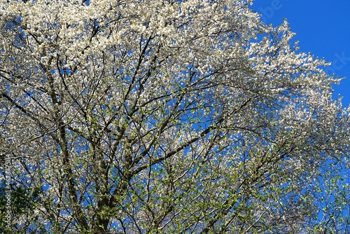 © askaflight, Obraz premium 山里に遅い春が来て、桜の花と新緑の季節に
