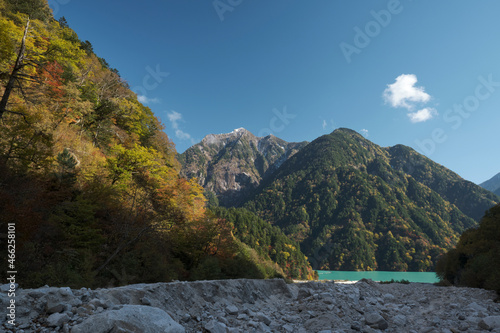 Obraz premium 秋の紅葉した高瀬渓谷