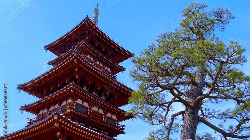 © Nobuhiro Watabe, Fototapeta premium 春の奈良 薬師寺 西塔と松の木