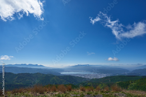 © osap1111, Naklejka premium 長野県 高ボッチ高原からの諏訪湖と富士山