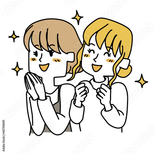 Obraz premium 上を見て喜んでいる二人の女性