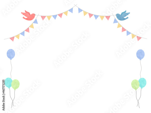 Obraz premium 背景素材:鳥とガーランドと風船の水彩風シンプルな背景
