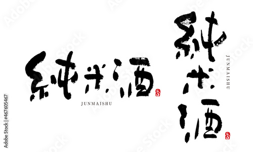 Naklejka premium 純米酒1 じゅんまいしゅ 筆文字 手書き
