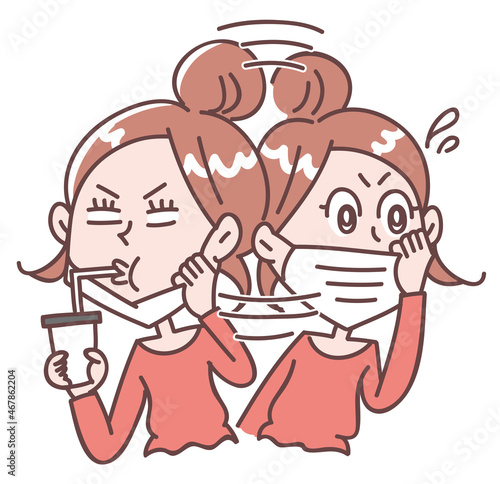 Obraz premium マスクをつけたり外したりする女性