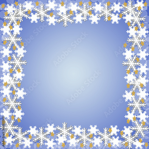 © playwalker, Obraz premium 青い背景と雪の結晶のフレーム