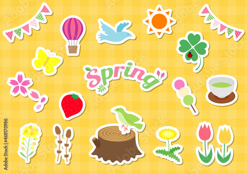 Fototapeta premium フラットでシンプルな春のイラストセット