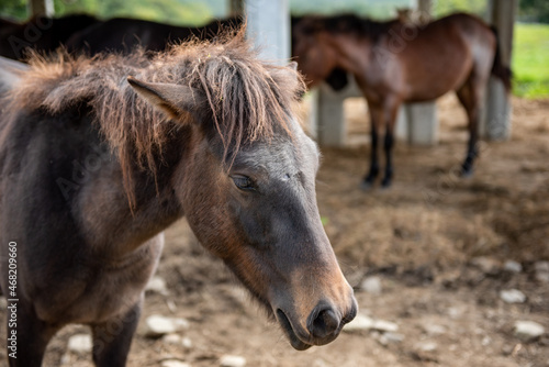 © nikomani, Obraz premium 長野県戸隠牧場の放牧された馬