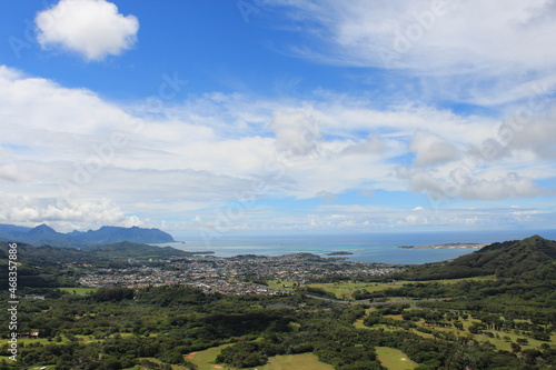 © mochi_works, Obraz premium ダイヤモンドヘッド頂上から見下ろす街並み