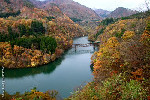 © tk2001, Fototapeta premium 秋の只見線・第3橋梁(福島県・三島町)