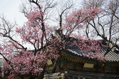 © K_UriNara, Fototapeta premium 전통한옥 창덕궁에는 홍매화와 진달래가 가 봄소식을 전하는 풍경이 아름답습니다.