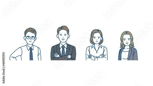 Fototapeta premium 白人 アメリカ人 イギリス人 ビジネスマン 外国人 男女 海外 上半身 イラスト素材