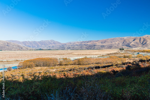 © pespiero, Fototapeta premium ニュージーランド ワイタキ地方のオマラマ近郊にあるクレイ・クリフから望むアフリリ川と風景