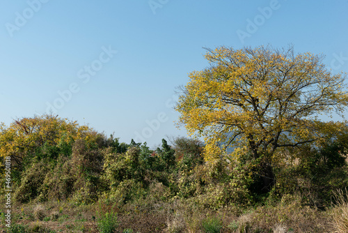 Fototapeta premium 가을에 들판에 자라는 풀과 나무가 단풍이 듬