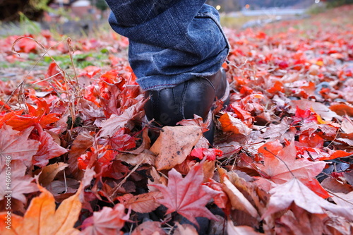 © M&M Factory, Fototapeta premium 落ち葉の中を歩く