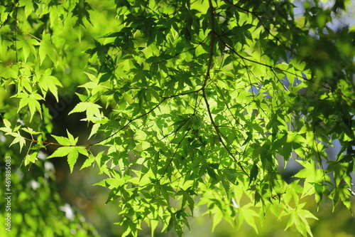 © HELLO Ashley, Fototapeta premium 新緑のカエデと太陽の光