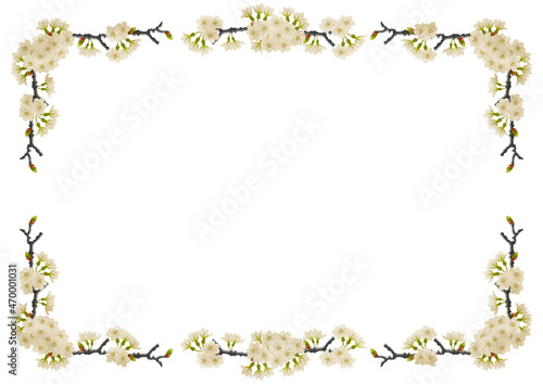 © Hinageshi, Obraz premium 桜の花と蕾のついた枝フレーム
