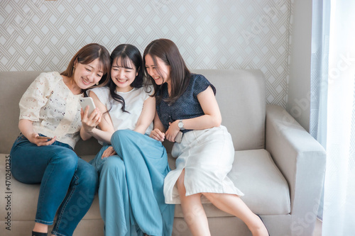 Obraz premium スマホを使う女性たち(爆笑・自撮り)