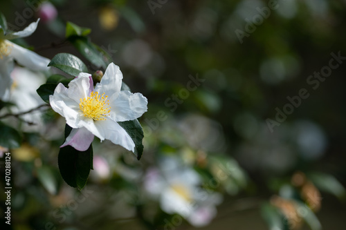 © 正人 竹内, Fototapeta premium 白い山茶花の花 11月