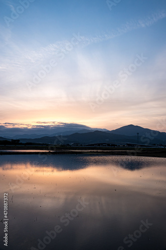 © 健太 若月, Obraz premium 水面と夕焼け空のリフレクション
