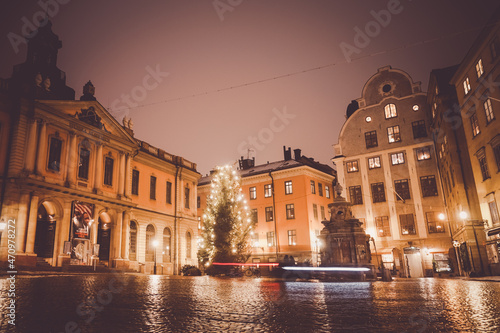 © kanzilyou, Fototapeta premium ガムラスタン旧市街の夜景