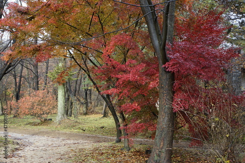 © K_UriNara, Obraz premium 숲에는 아름다운 단풍으로 물들어 있는 고즈넉한 풍경입니다.