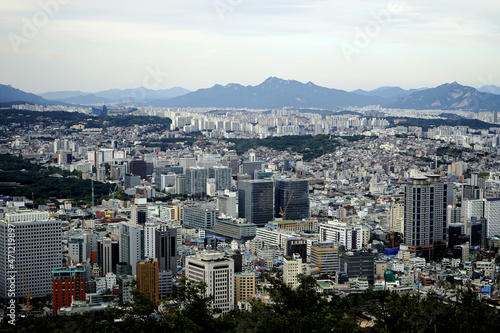 © K_UriNara, Obraz premium 남산공원에서 바라보이는 도시빌딩들과 풍경이 아름답습니다.