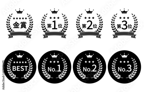 Obraz premium モノクロのランキングメダル イラストセット2