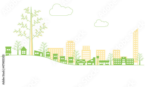Obraz premium シンプルな建物ビルディングのアイコンで描かれた街並みの2色風景イラスト