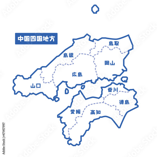 © suzumeclub, Fototapeta premium 日本の地域図 中国四国地方 シンプル白地図