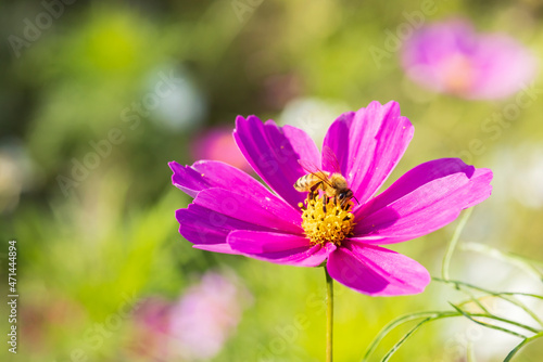 Fototapeta premium 瑞々しい葉のカラフルなコスモス