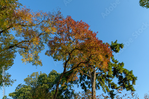 © FUJIOKA Yasunari, Obraz premium 綺麗な青空とグラデーションになったナンキンハゼの紅葉が美しい風景