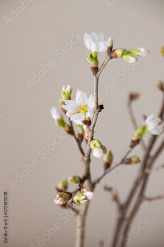 Obraz premium 啓翁桜の枝、桜が綻んでいる様子。山形産の啓翁桜