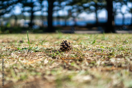 © Kazu8, Obraz premium 地面に落ちた松ぼっくり