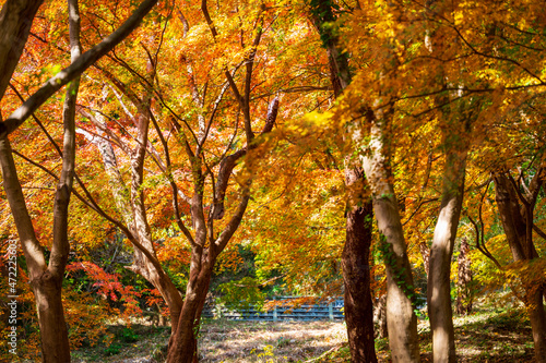 Fototapeta premium もみじ谷に赤く色づいたきれいな紅葉 福岡県