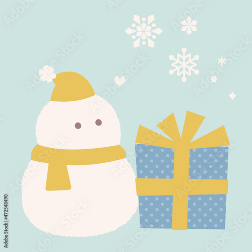 Fototapeta premium 雪だるまとプレゼントが並んでいるイラスト