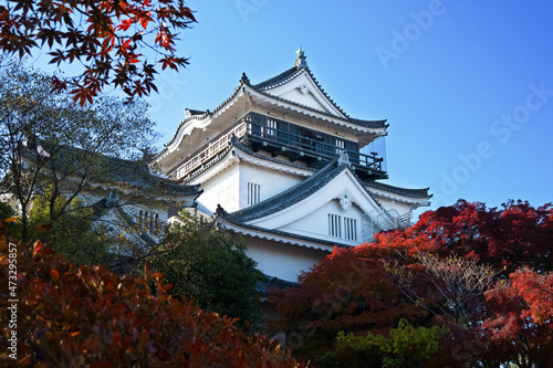 © CHOCOMAMA, Obraz premium 岡崎城の天守閣と紅葉