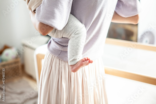 Obraz premium 母親に抱かれた乳幼児の足元