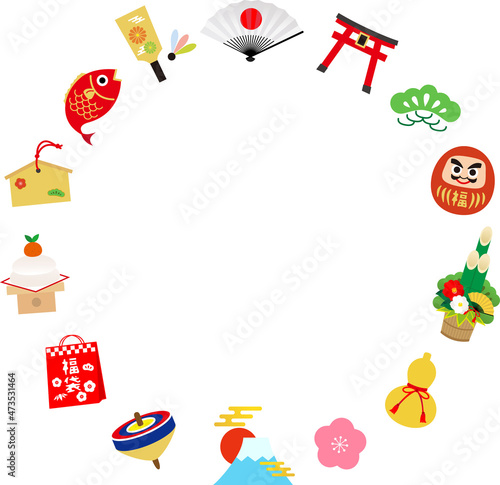 Obraz premium イラスト年賀状素材:通年対応フレーム カラフルなアイコン素材セット 透過&白背景