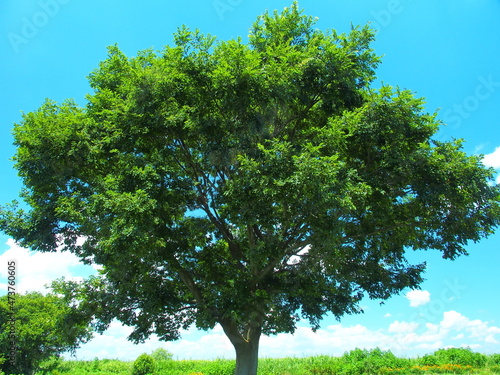 Obraz premium 夏の河川敷の榎の大木