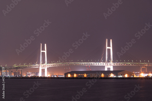 Naklejka premium 横浜 大さん橋から眺める横浜ベイブリッジの夜景