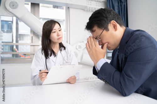 Fototapeta premium 病状をカウンセリングする女医と悩む男性患者メディカルイメージ