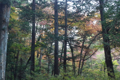 Obraz premium 紅葉はじめの森林