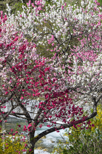 © knight0315, Obraz premium 川辺に咲く満開の花桃