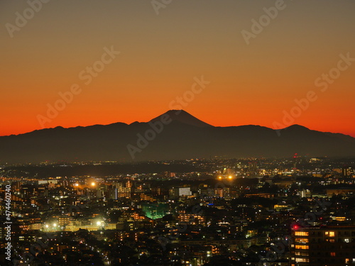 © homebell, Obraz premium キャロットタワー展望台からの富士山と街並みの夜景
