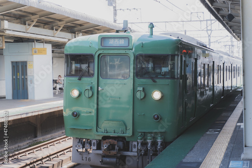 © takaho, Fototapeta premium 滋賀県の湖西線の緑の電車