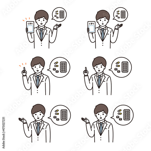 Naklejka premium 男性 薬剤師 医師 白衣 表情セット