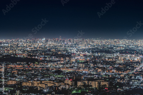 Naklejka premium 大阪,五月平展望台,展望台,夜景,東大阪,ライトアップ,高層ビル,静か,眺める,テキストスペース,建造物,建築物,揺らめく,...