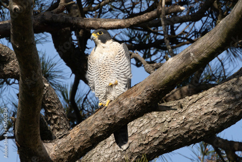 © cat_smile, Obraz premium 松の枝にとまるハヤブサ
