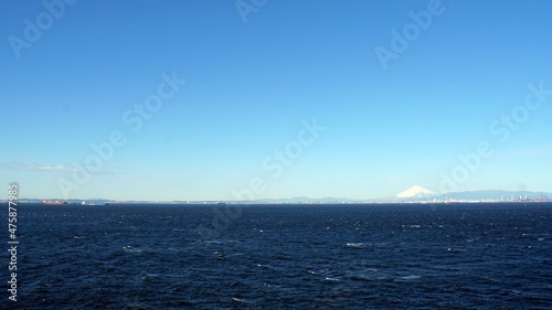 Fototapeta premium 東京湾アクアラインの海ほたるから見た東京湾の海と富士山