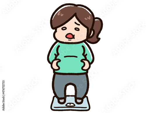 © ゆりゆりのゆり, Obraz premium ショックを受けている肥満の女性 体重計